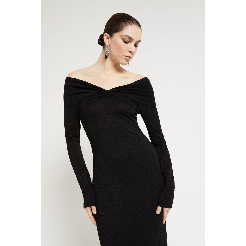 CASCIA Metallic Lurex Pleated Midi Dress Camel