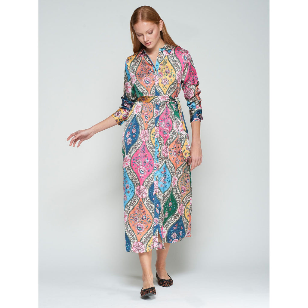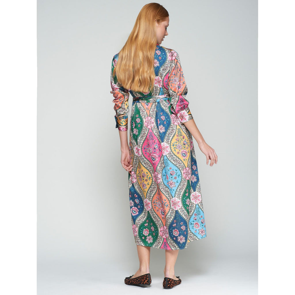SUZANI Azul Printed Long Length Shirt Dress Navy/White