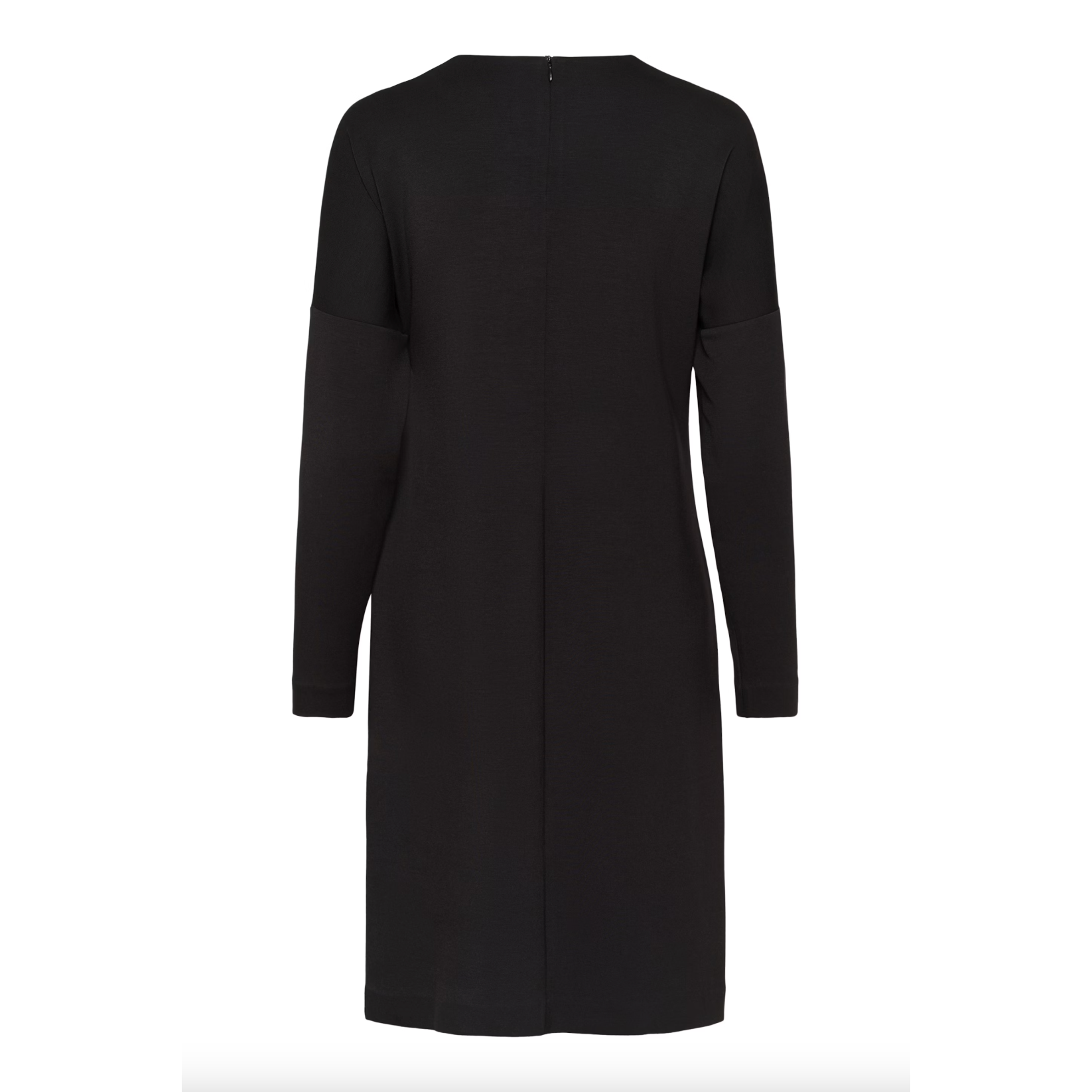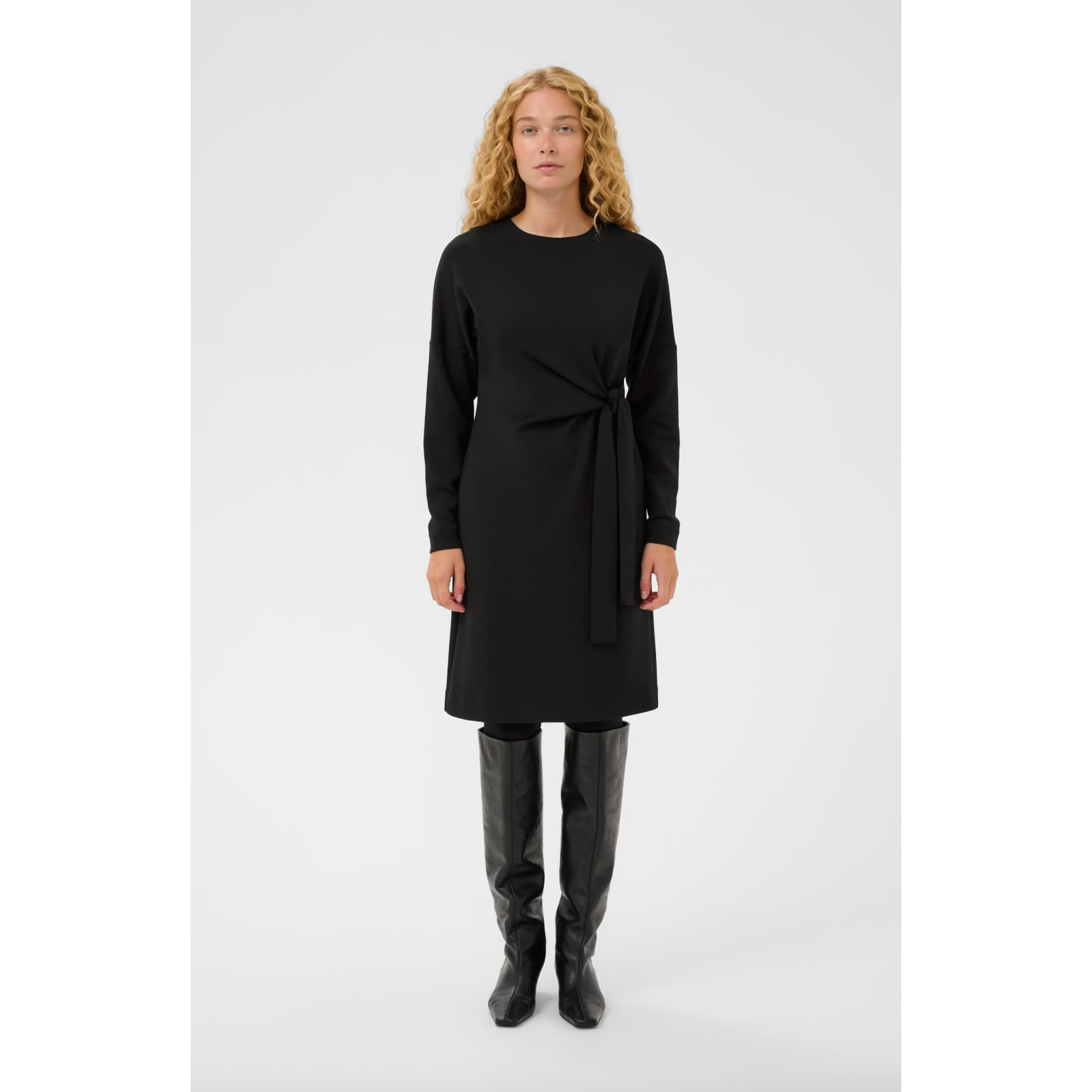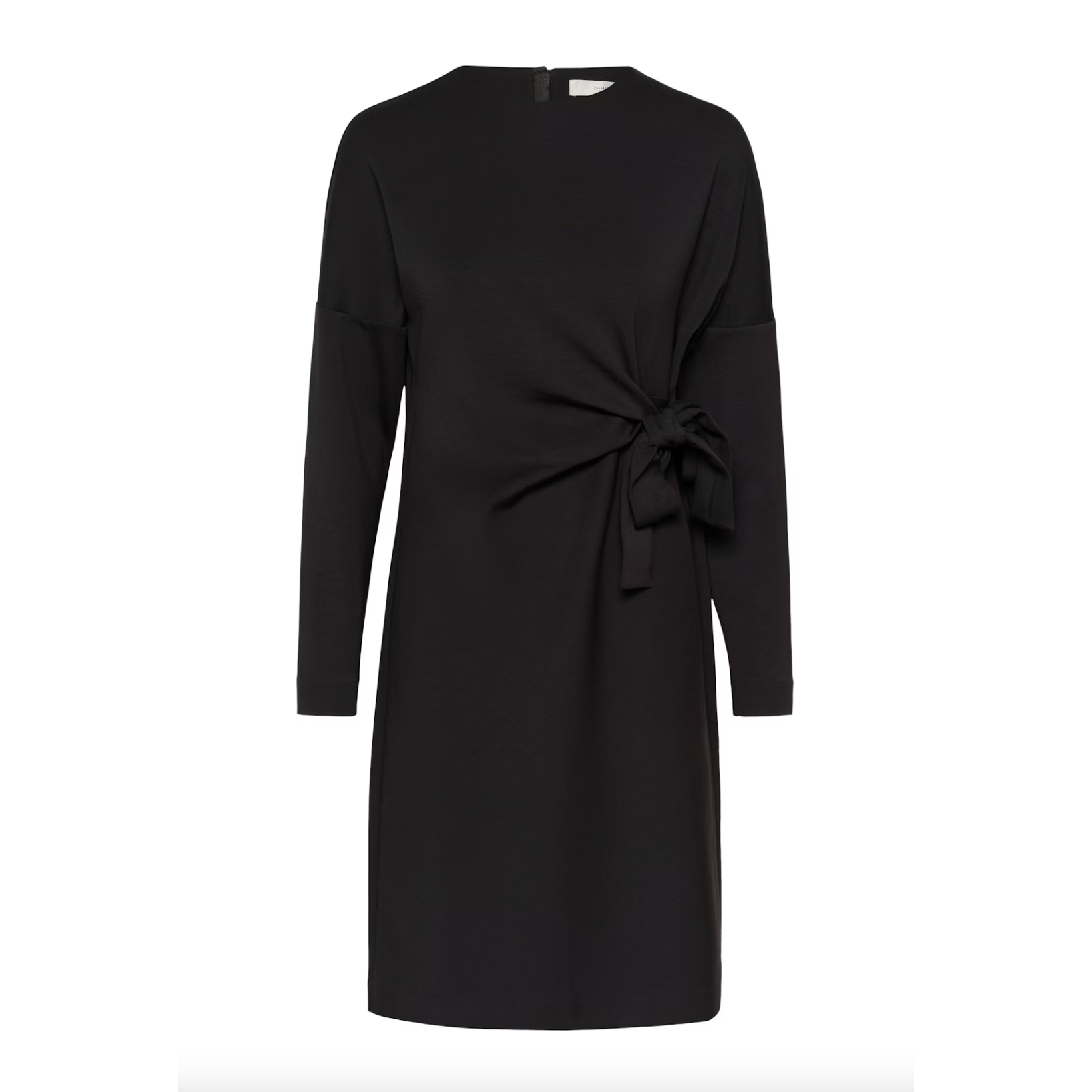 The InWear TriIW VincentIW Knot Dress in Black brings effortless sophistication to everyday dressing. Cut in a straight silhouette with a clean crew neckline, it features a distinctive side tie that gathers the fabric gently for a flattering, sculpted shape. Crafted from a smooth knitted modal blend, it offers a soft, comfortable feel with just the right amount of stretch. The above-knee length and long sleeves keep the look modern, minimal, and easy to wear.