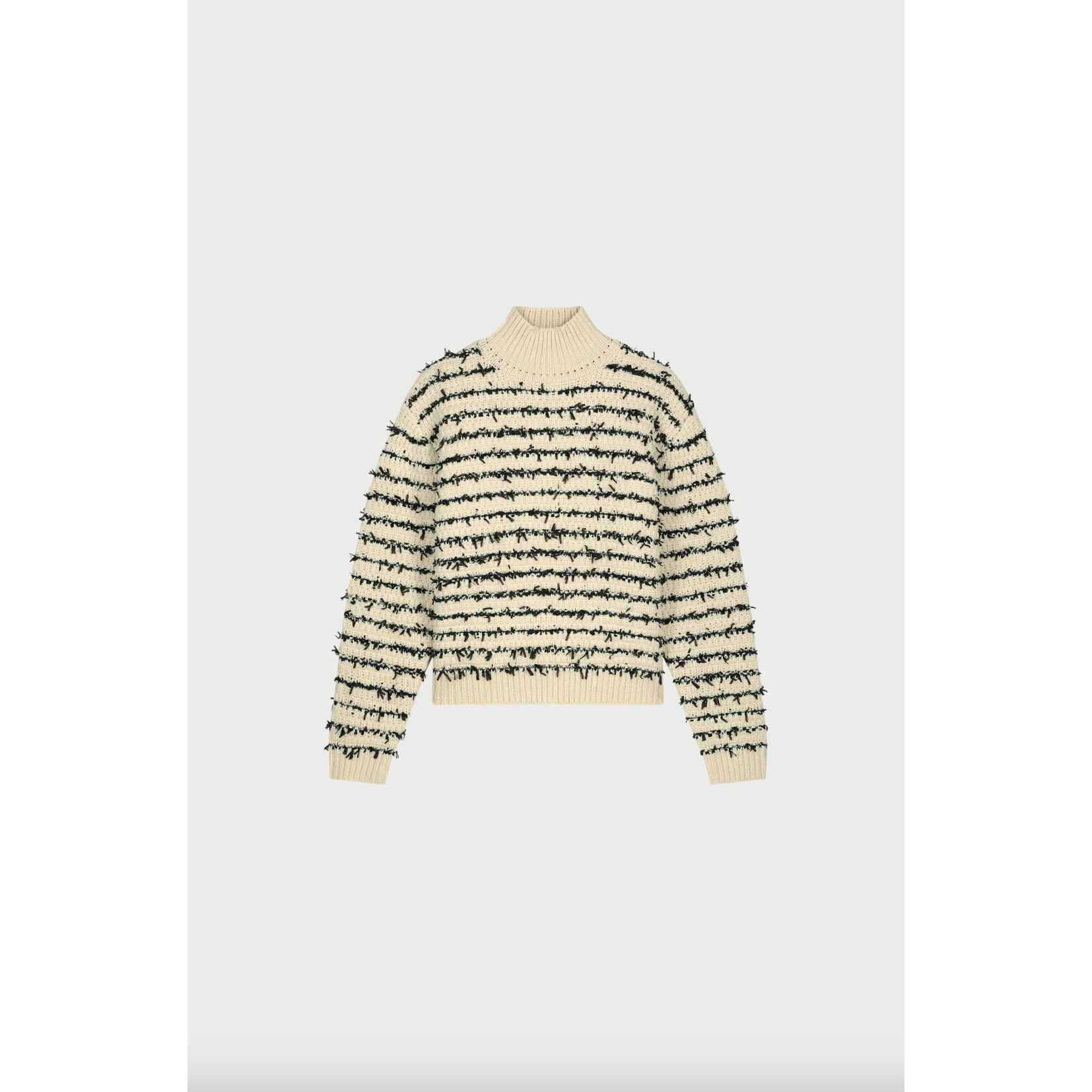 The Fabienne Chapot Zilla Pullover in Cosy White brings texture and timeless style together beautifully. Designed with a playful textured stripe and a classic silhouette, it’s the perfect blend of comfort and sophistication. The soft wool-blend knit feels luxurious against the skin, making it a versatile choice for both relaxed days and refined dressing.