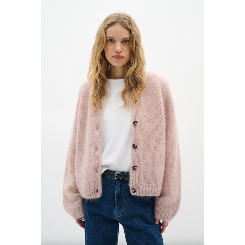 JetraIW Mohair Wool Cardigan Blush Pink
