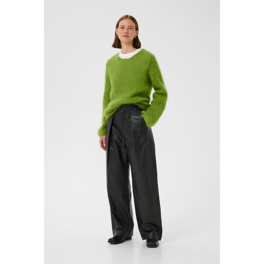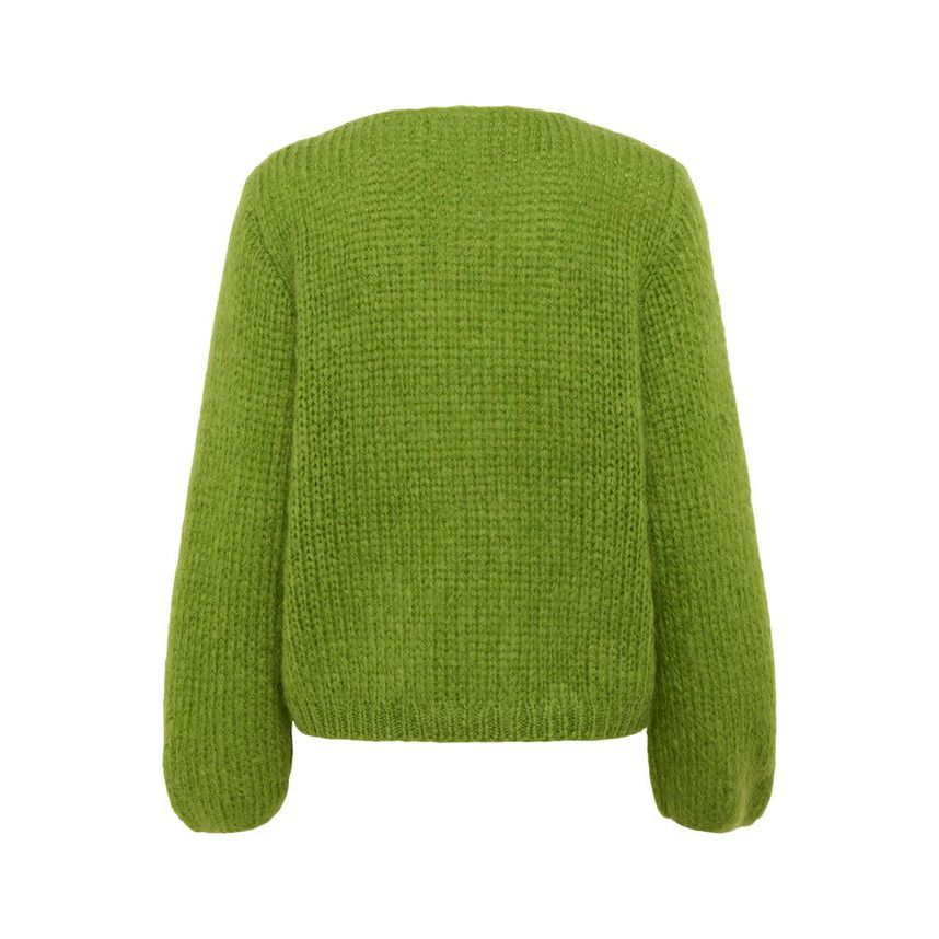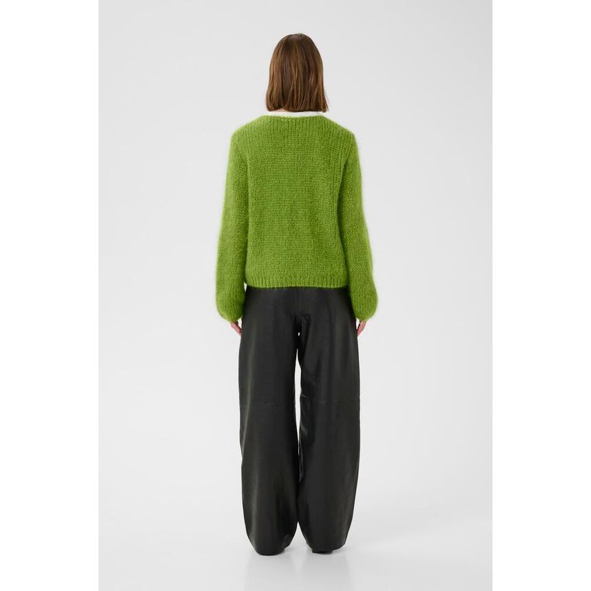 The JetraIW Mohair Pullover from InWear is a soft, lightweight knit in a striking bold green. Crafted from a brushed mohair-wool blend, it features a relaxed silhouette, round neckline and long balloon sleeves, combining everyday comfort with a statement colour.