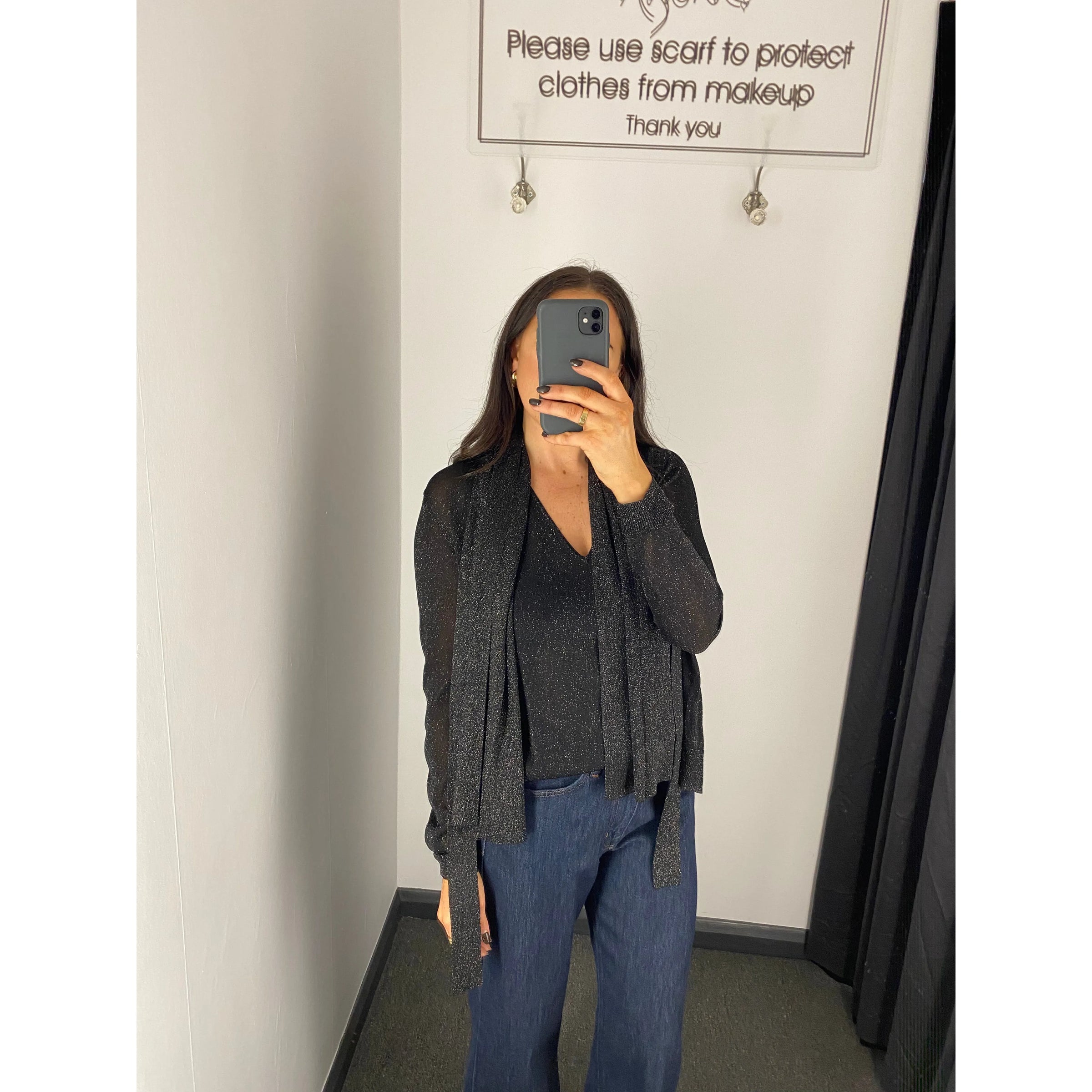 Customers love the softness of the fabric and how comfortable it feels despite the metallic yarn. Many comment that it’s a great “day-to-evening” piece, easy to dress up or down and flattering worn on its own or layered.