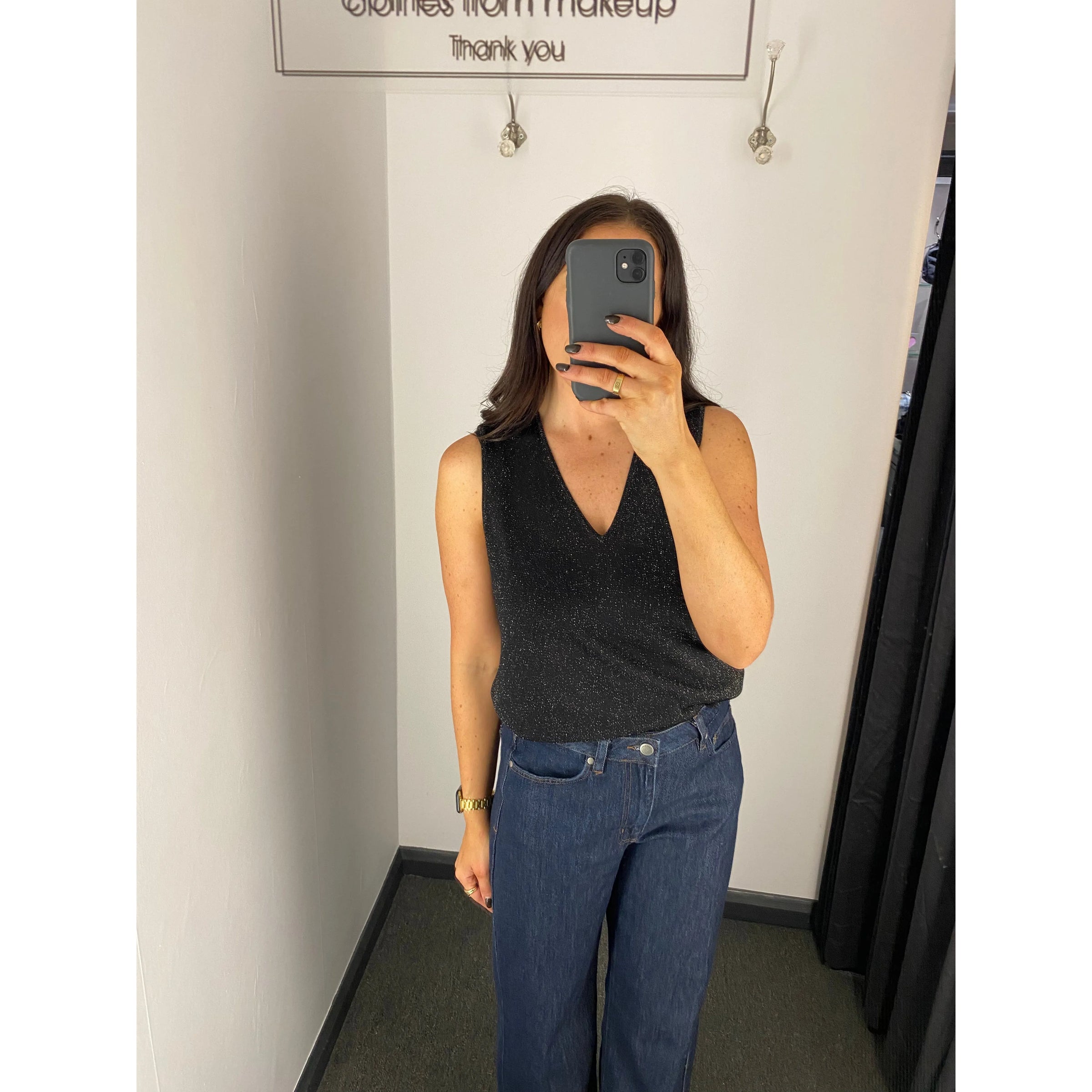 This tank is beautifully simple yet instantly polished. The metallic thread catches the light softly without feeling overly sparkly, giving it an elegant, contemporary feel. Its versatility is a real standout — layer it for understated sophistication or wear it solo for a sleek evening look.