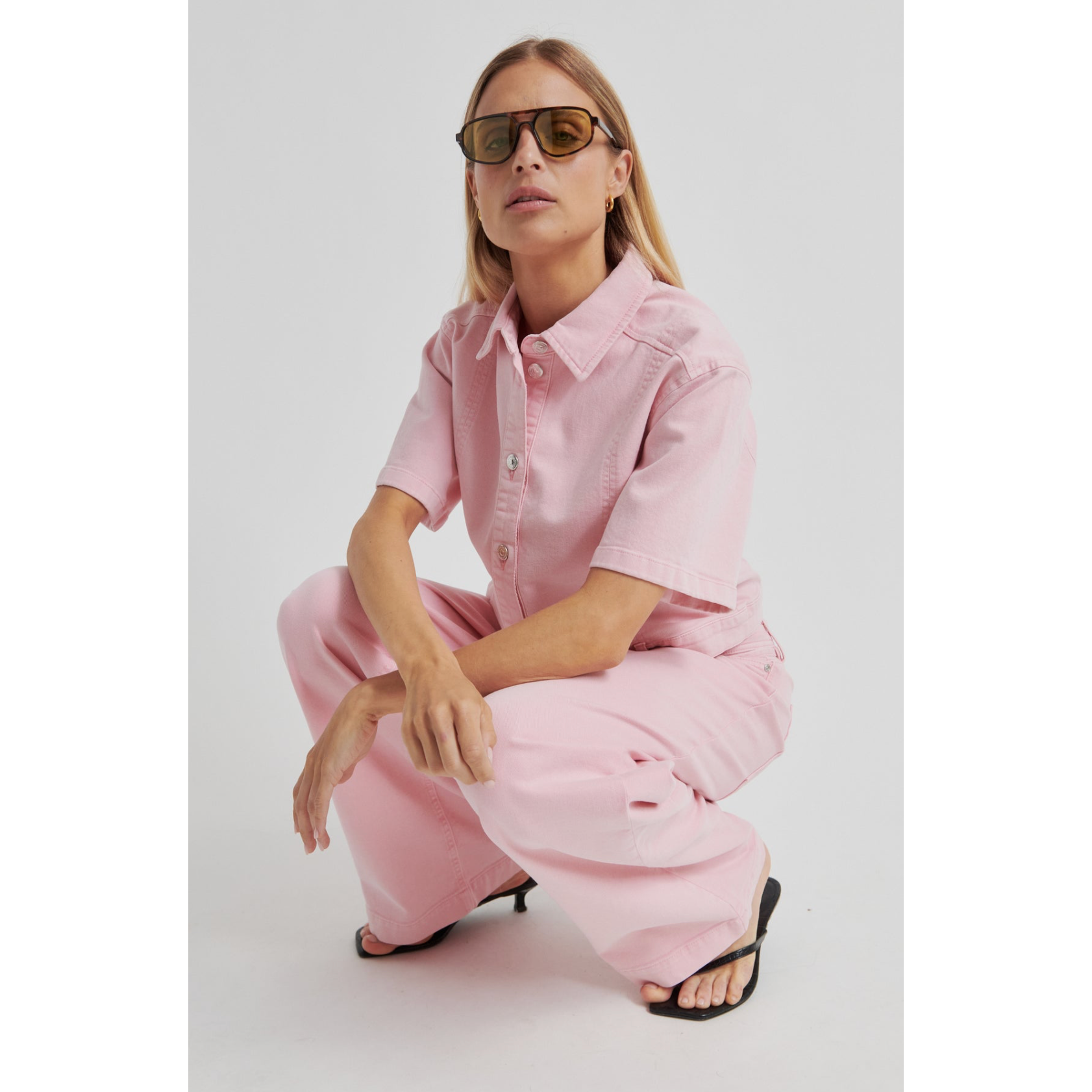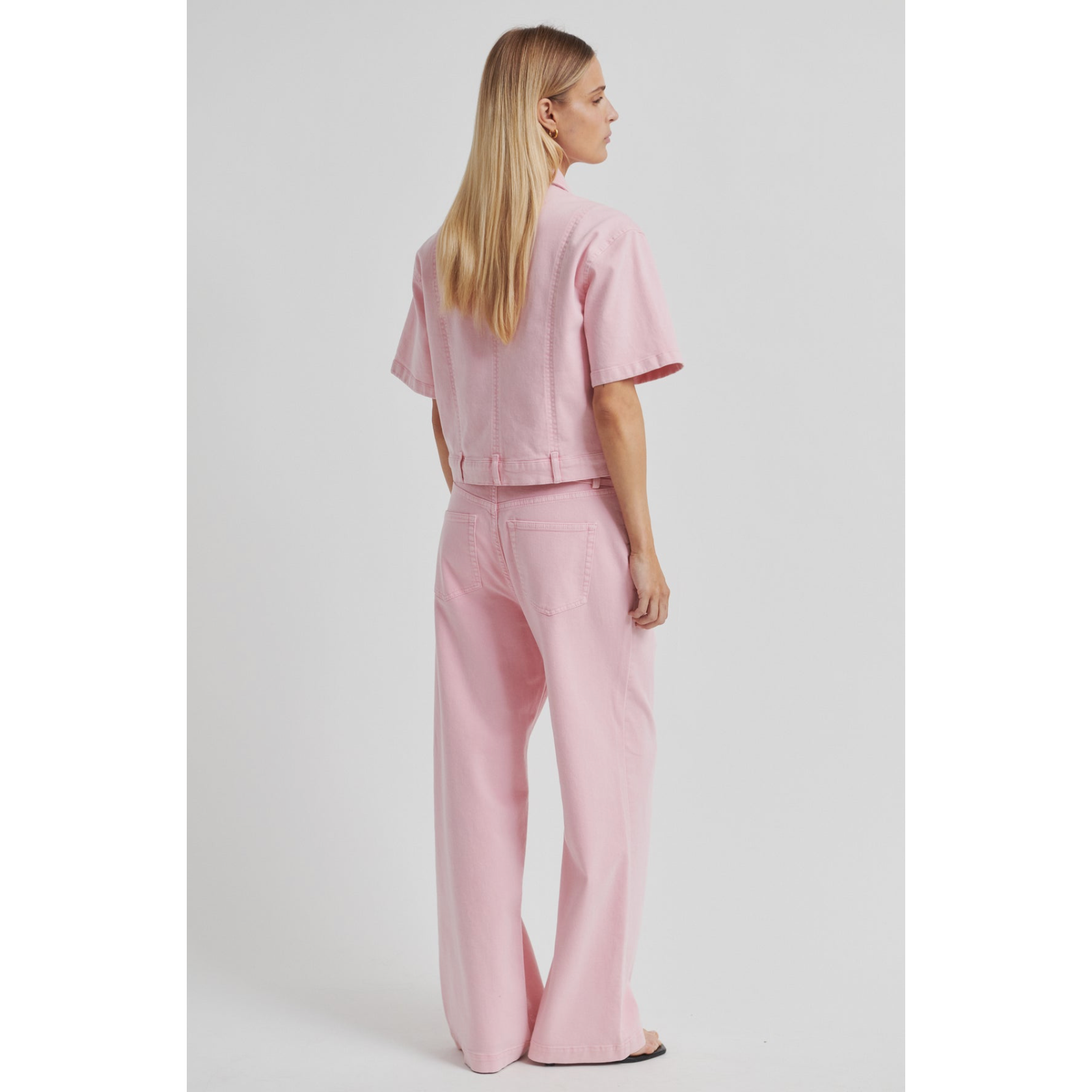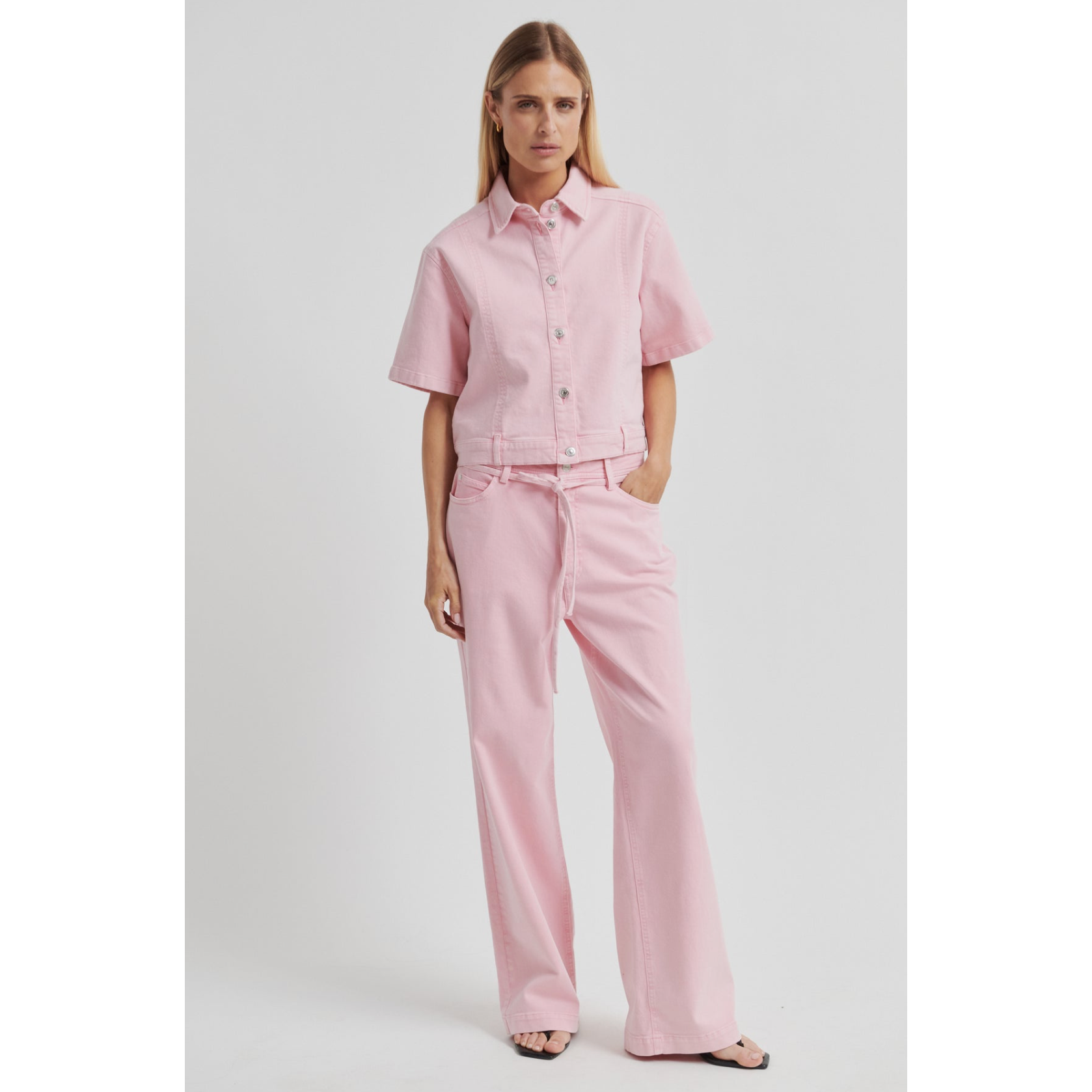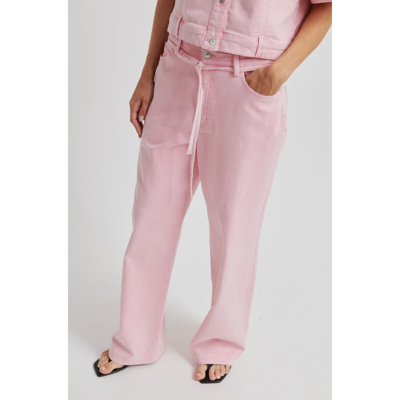 These jeans feel both playful and polished. The pink tone adds something a little different, while the wide-leg shape keeps them feeling current and easy to style. The tie belt detail gives added definition at the waist.