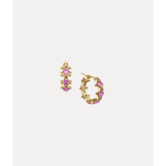 The Vivienne Westwood Warwick Earrings reinterpret the silhouette of the classic Warwick ring in an elegant hoop design. Inspired by the house’s iconic orb motif – symbolising tradition taken into the future – the earrings feature interlocking gold-tone orb details, beautifully encrusted with purple cubic zirconia crystals.