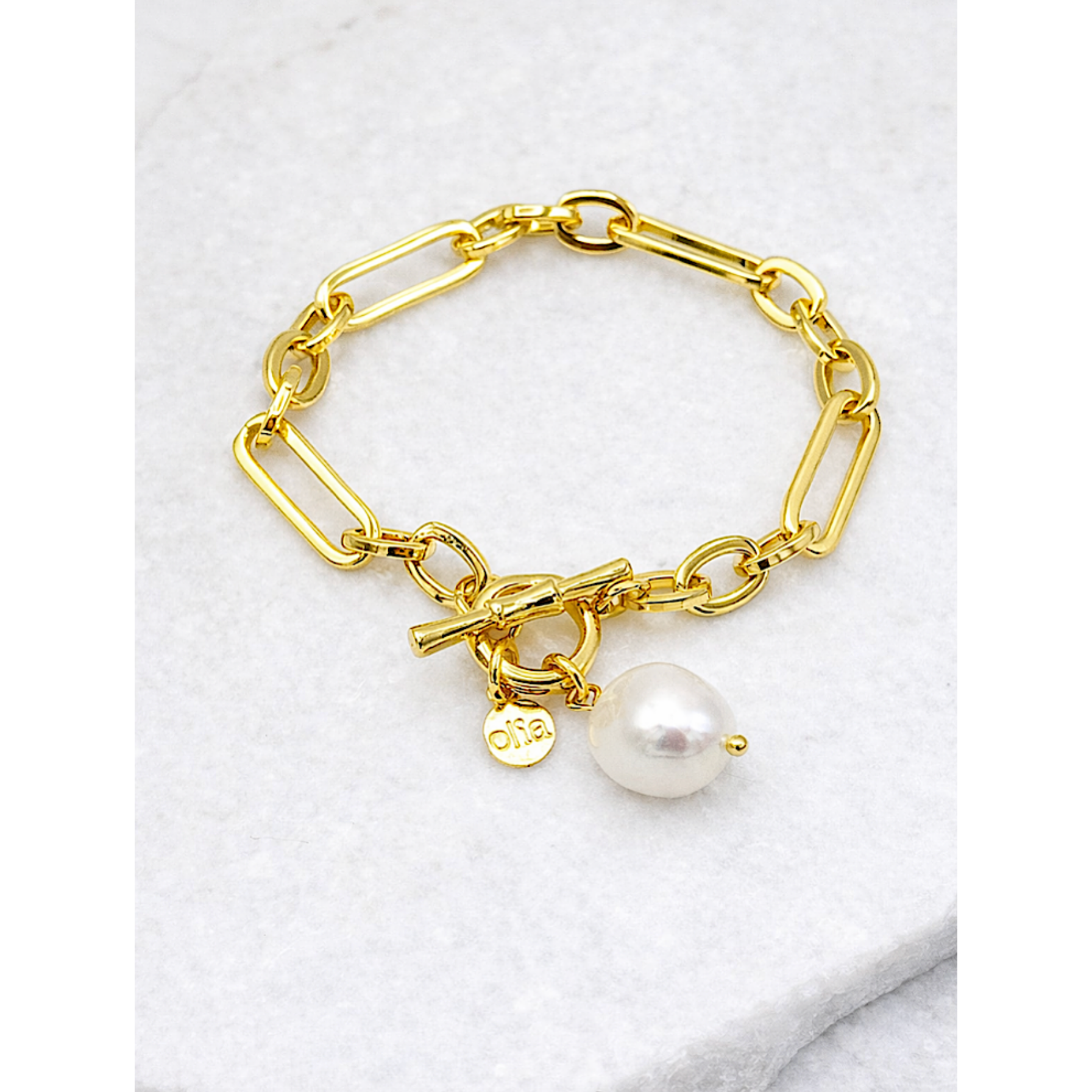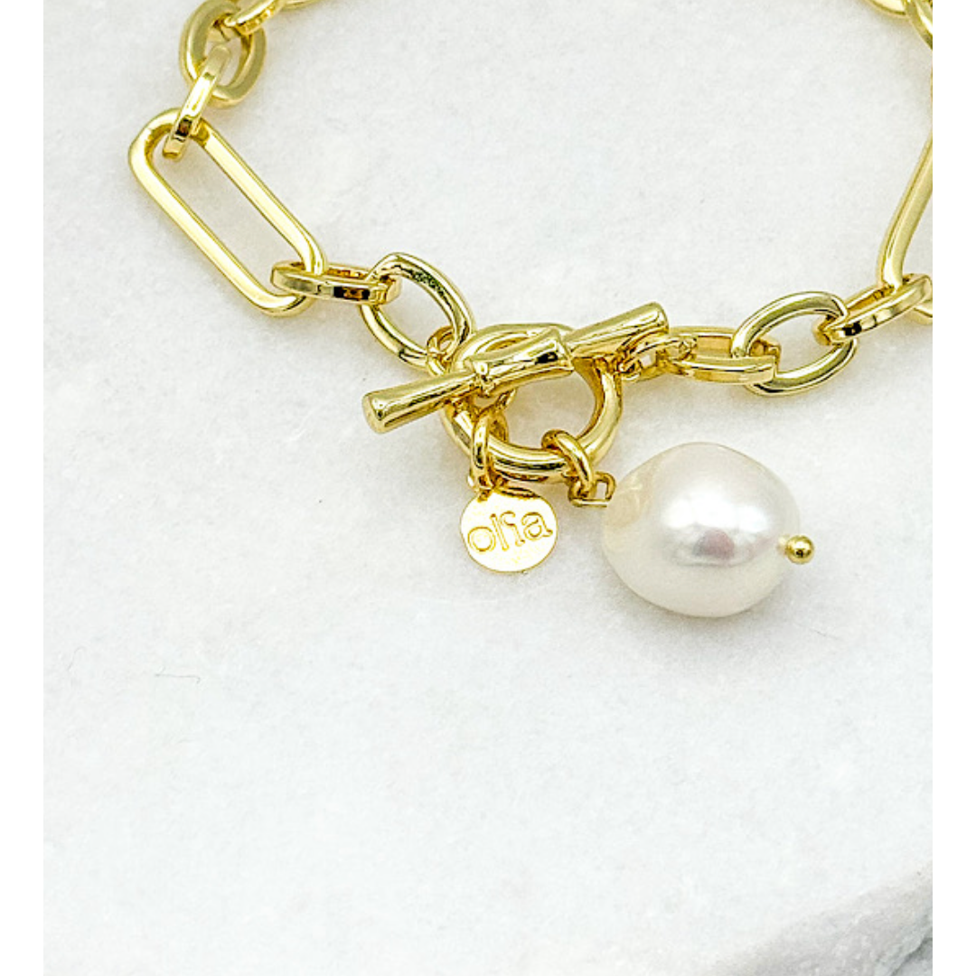 The Demi Baroque Pearl Bracelet from Olia Jewellery is a modern statement piece designed to bring effortless elegance to everyday styling. Featuring a bold gold link chain finished with a beautiful baroque pearl charm, this bracelet blends contemporary design with a timeless jewellery classic. Perfect for wearing alone or layered with other bracelets, it transitions seamlessly from day to evening.