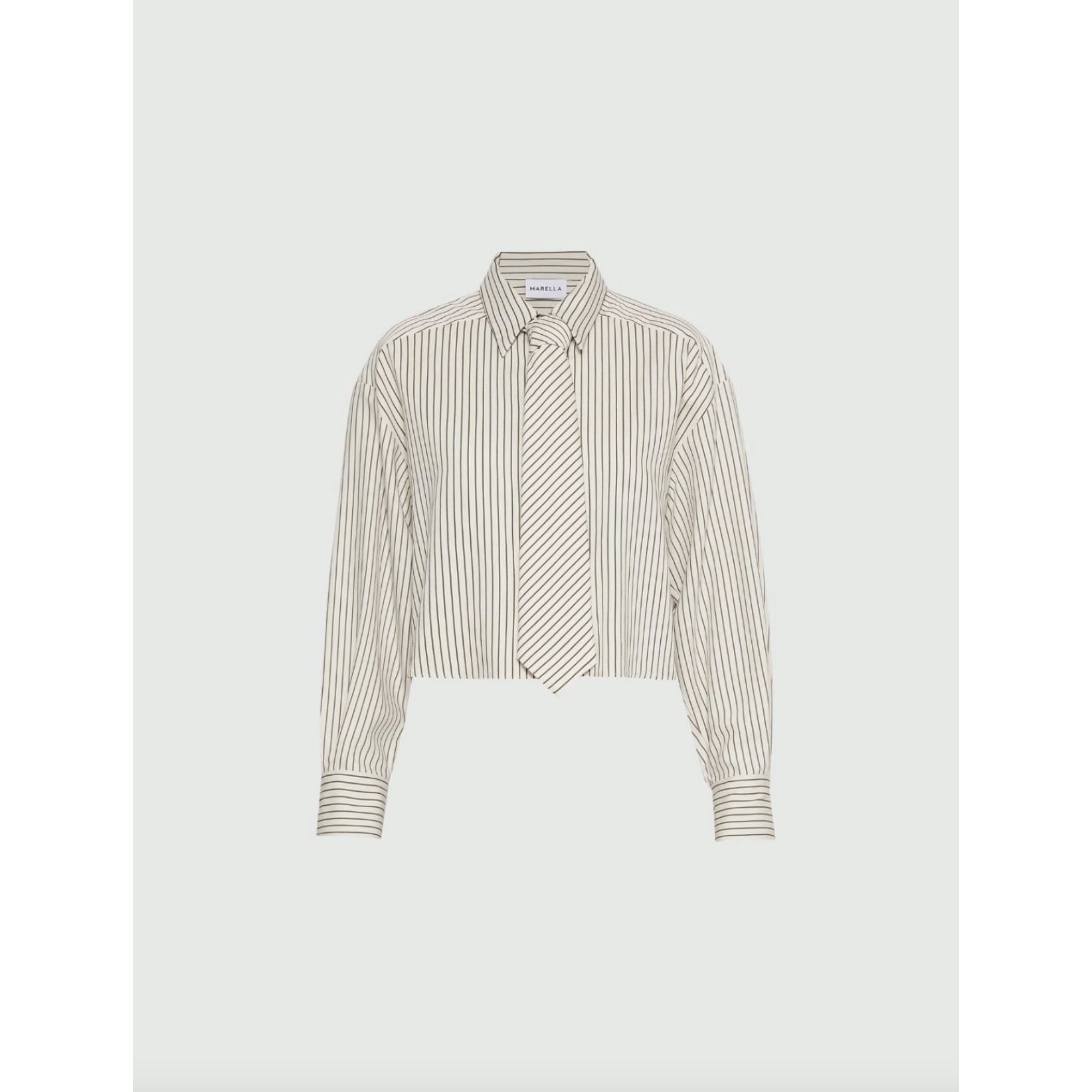 The Marella Duke Twill Stripe Shirt with Tie brings timeless sophistication to modern dressing. Crafted from a luxurious viscose-blend twill with a subtle sheen, this striped blouse balances Bon-ton elegance with contemporary tailoring. Featuring a cropped waist, concealed button placket, and refined shirt collar, it offers a fresh, structured silhouette with effortless polish. The detachable matching tie adds versatility — perfect for styling your own way.