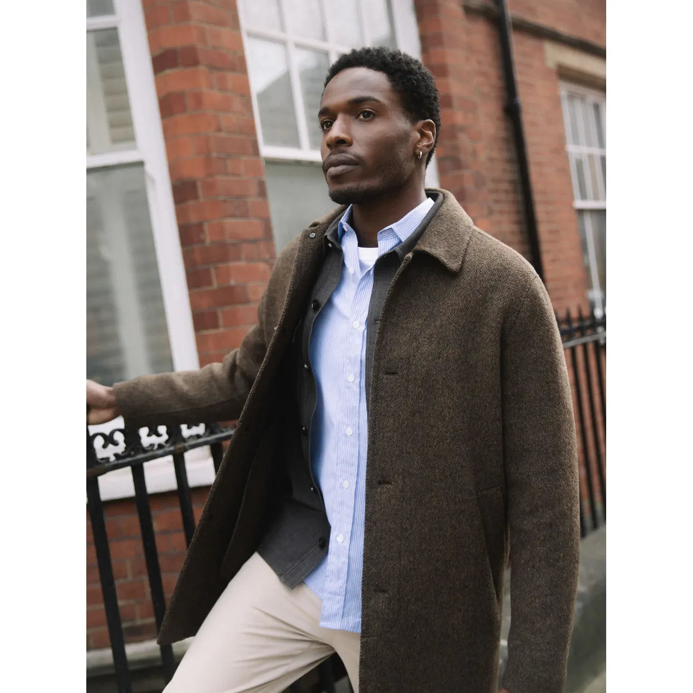 The MMGBarkley Wool Coat in Slate is a refined outer layer that brings polish without feeling heavy. Tailored from herringbone wool, it offers a clean, structured silhouette while keeping a light, easy-to-wear feel. Designed in a regular fit, it layers comfortably over knits or tailoring, making it a versatile choice for smarter days or elevated casual wear.