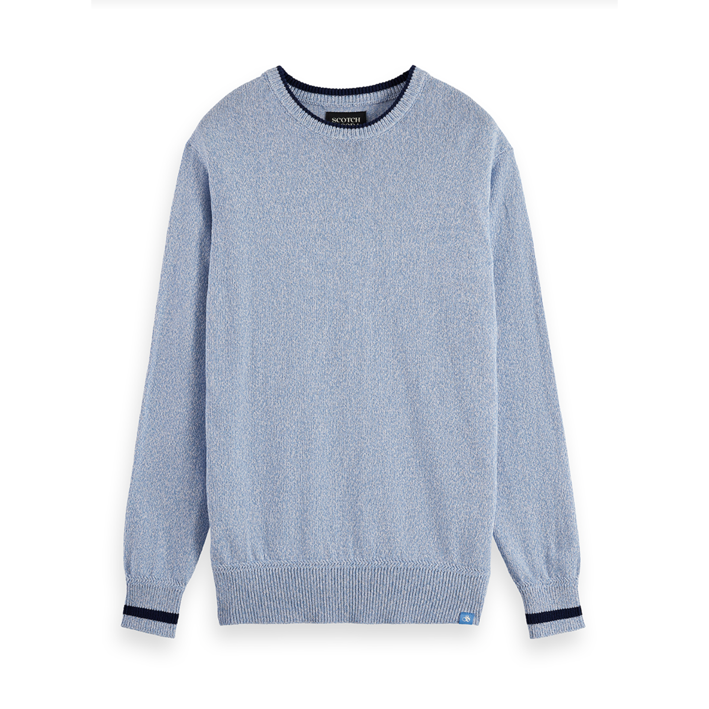 This melange crew neck jumper from Scotch & Soda delivers on easy, everyday style with a twist. Crafted from 100% cotton, it’s designed in a regular fit and finished with contrast ribbed detailing at the neck and cuffs. The speckled brown knit adds a textured effect that’s both versatile and understated.