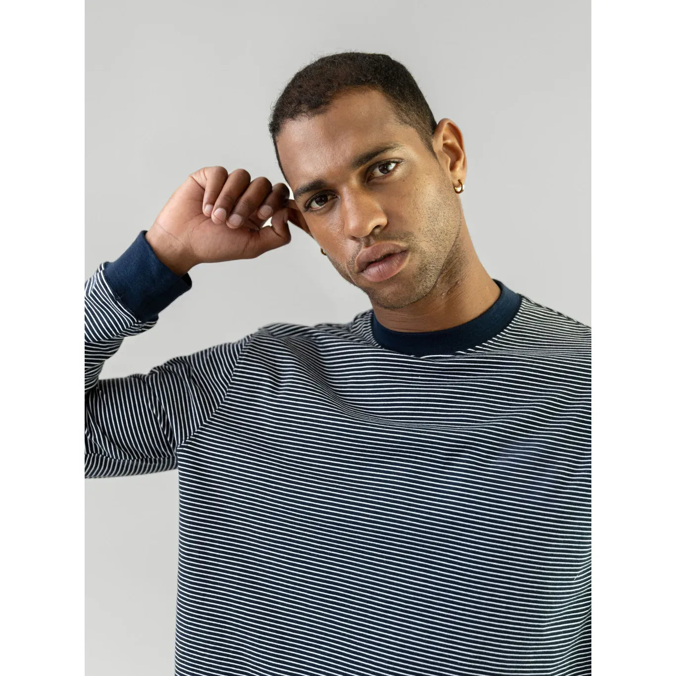 The Hume Stripe Long Sleeve Tee in Blue is an everyday staple done properly. Cut in a relaxed regular fit, it’s got that easy, throw-on appeal with just enough refinement to feel considered. The chest logo keeps things understated, giving a subtle nod to MOS MOSH Gallery’s signature style. Wear it solo with denim or layer it under a jacket when you want something simple but sharp.