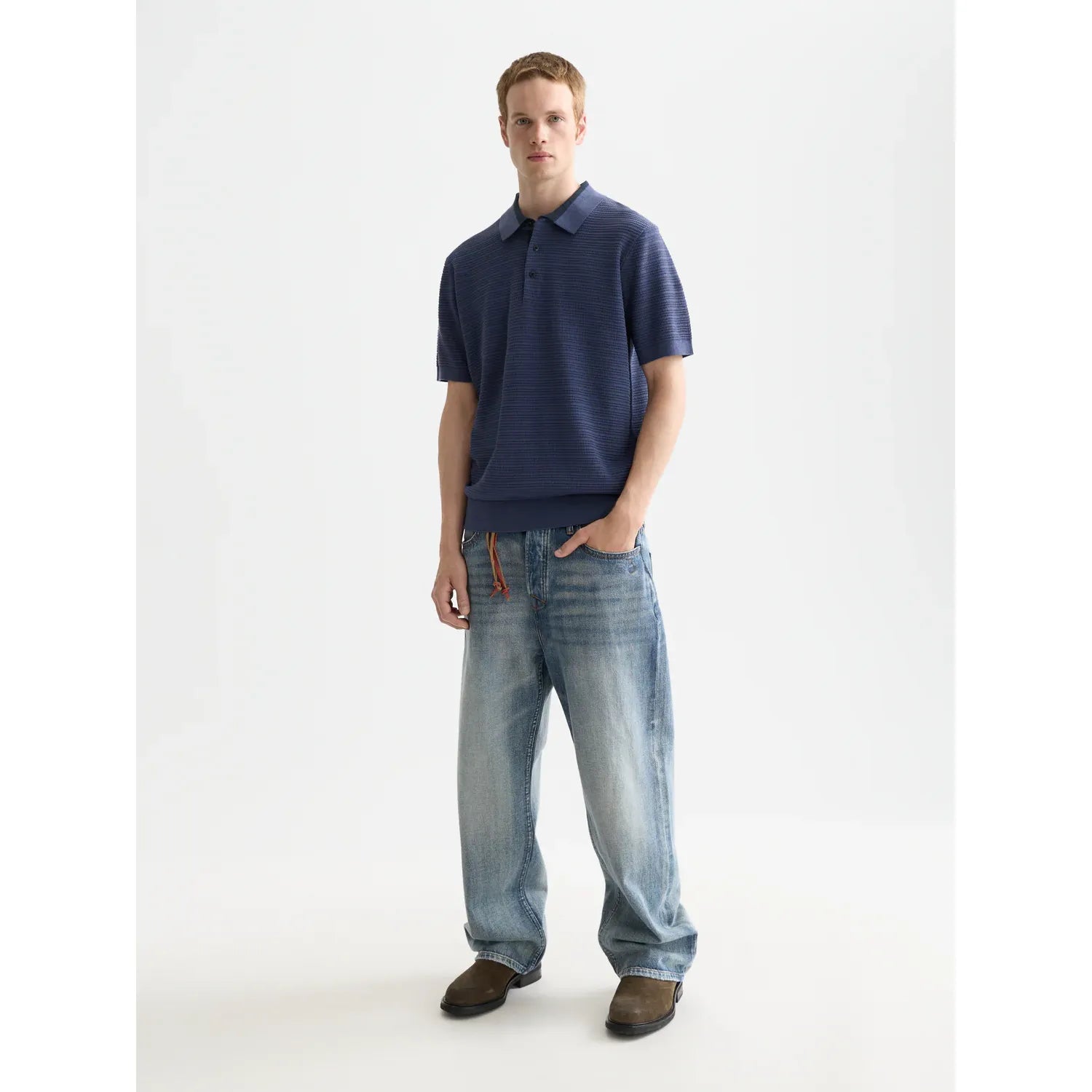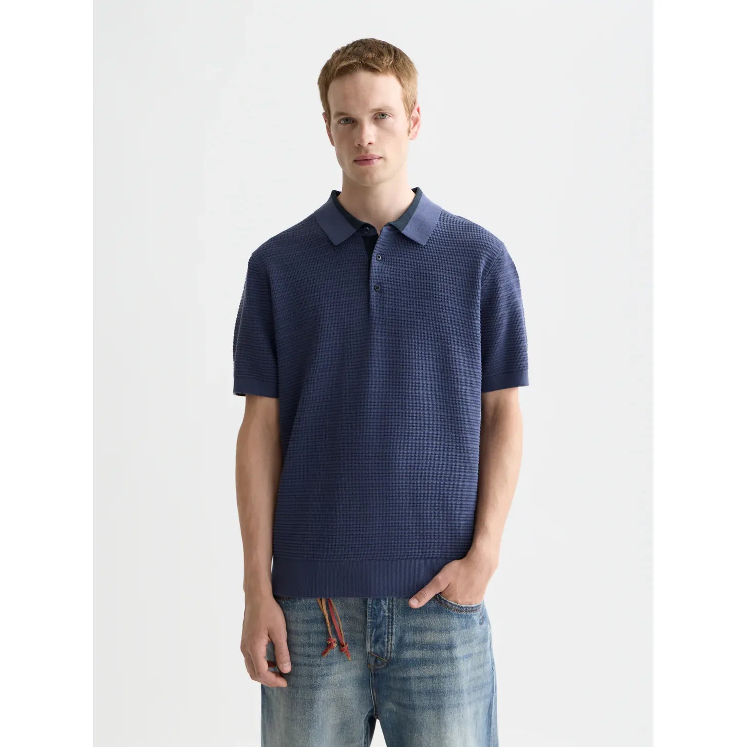 • Structured knitted polo design