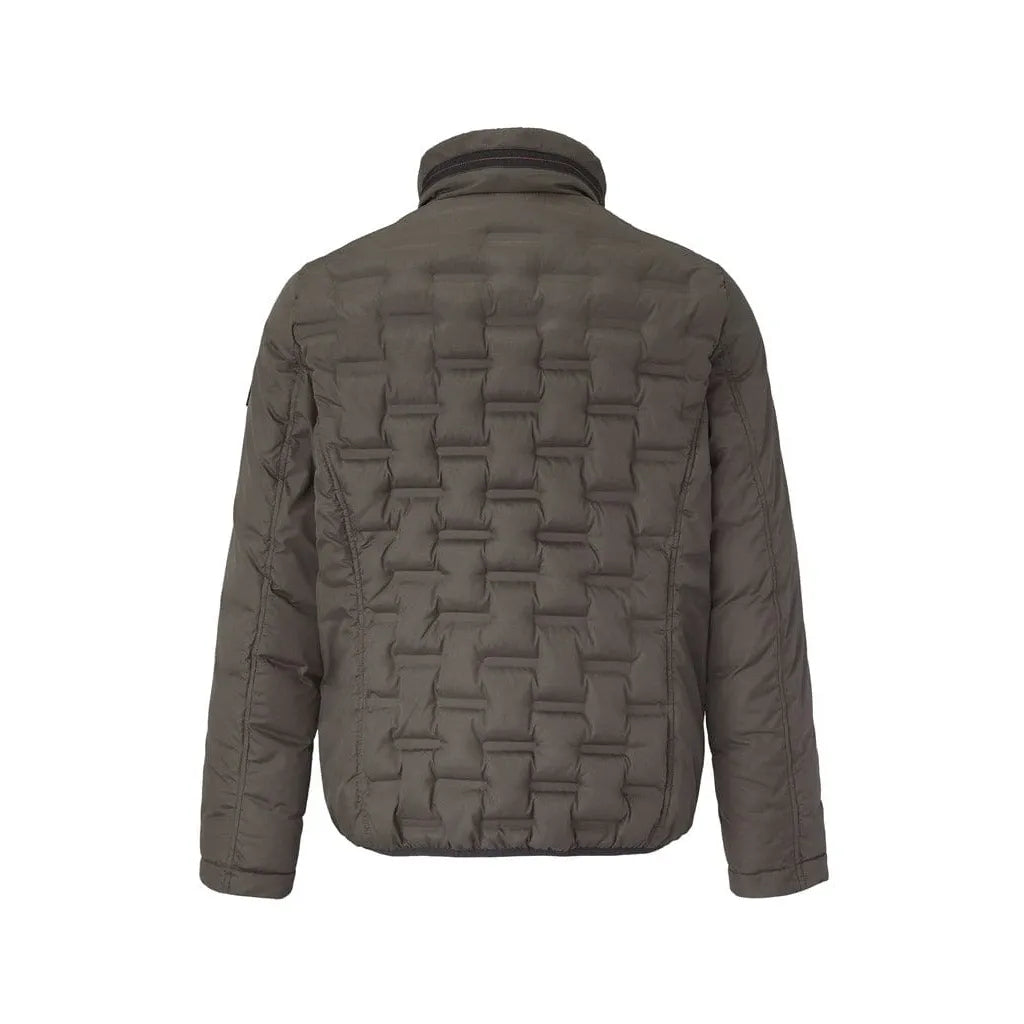 The Apollo Jacket in olive brings together warmth, lightness and clean styling in one easy everyday layer. The dynamic quilting adds a modern edge, while the recycled polyester down keeps it warm yet incredibly lightweight. Soft, water-repellent and finished with subtle orange contrast stitching, it’s a versatile piece designed for year-round wear — perfect for off-duty days and effortless layering.