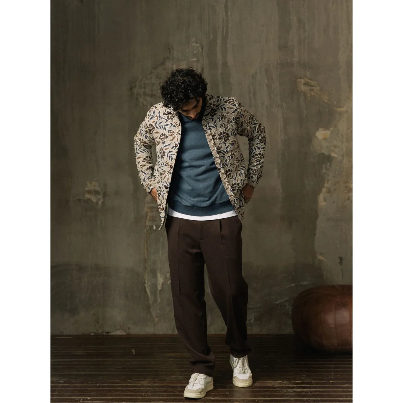 The MMG David Nomade Overshirt in Brown/Khaki is a standout seasonal layer with a more elevated edge. Crafted from elegant French jacquard, it brings subtle texture and depth while keeping the overall look clean and wearable. Cut in a regular fit with a refined collar and classic closure details, it’s an easy piece to throw on for casual days, but smart enough to carry you into the evening.