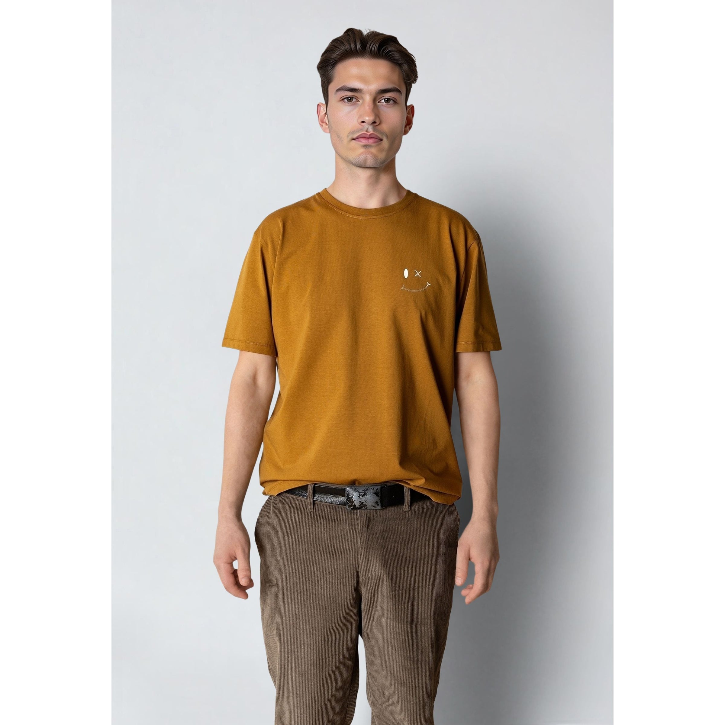 The Patrick Organic T-Shirt in Golden brings a warm pop of colour to your everyday wardrobe. Made from soft organic cotton with a touch of stretch, it’s designed for a comfortable regular fit that holds its shape. The standout feature? Clean Cut Copenhagen’s signature X logo playfully transformed into a smiley — an understated nod to the brand’s personality.