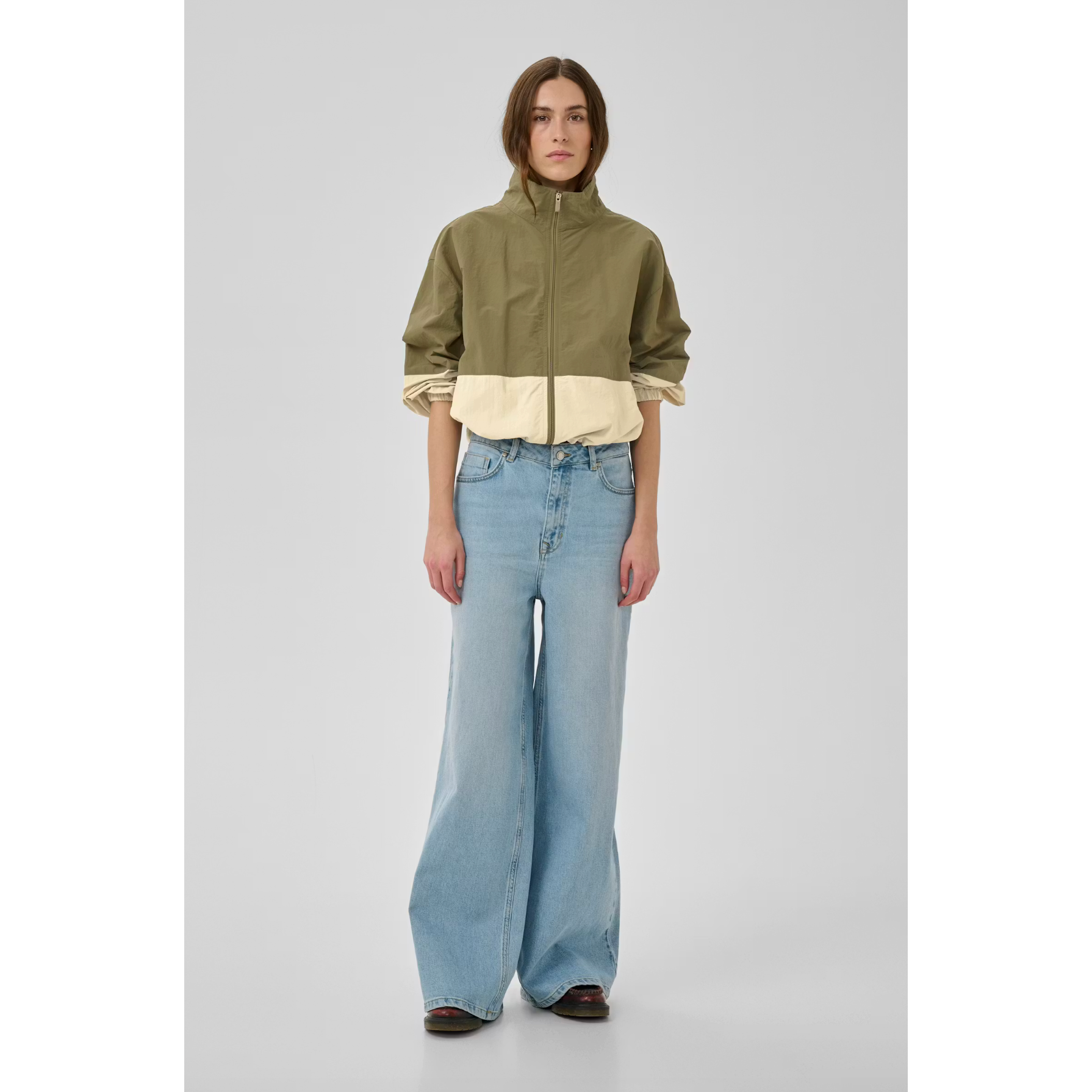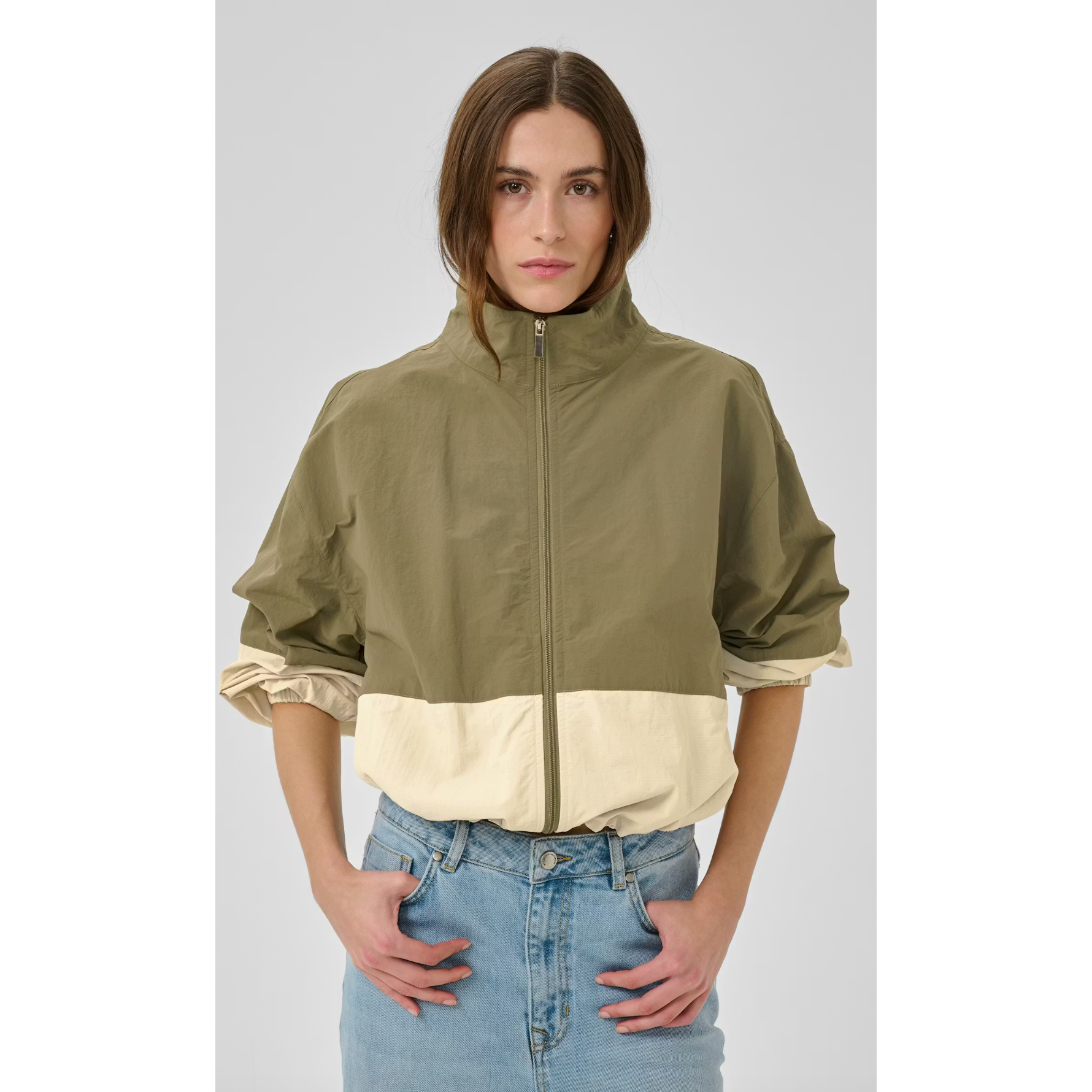 The MWQuinn Track Jacket from My Essential Wardrobe is a relaxed, modern layer designed for effortless everyday styling. Crafted in a lightweight nylon with a soft textured finish, this two-tone jacket features a high stand collar and clean zip-up front for a sporty yet refined look. The loose silhouette and hip-length cut make it an easy piece to throw on over casual outfits.