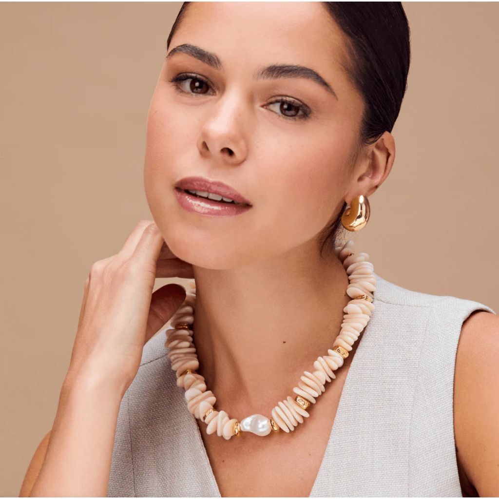 Statement Chip & Pearl Necklace Pearl
