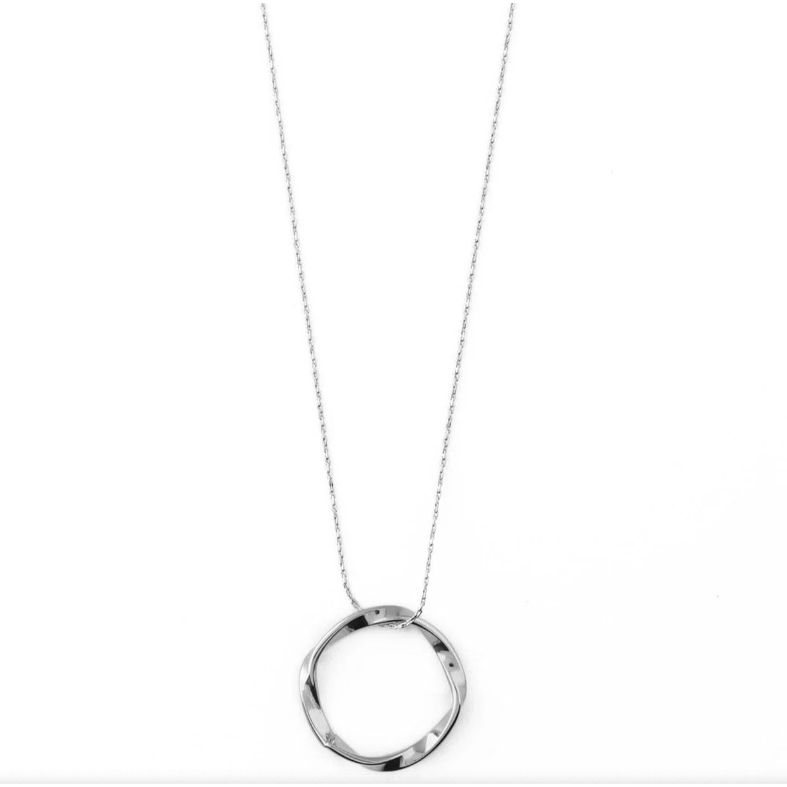 This necklace feels timeless yet contemporary. The twisted circle adds quiet detail without overpowering your outfit, making it ideal for daily wear. Its mid-length chain makes it brilliant for layering — adding depth and dimension to your existing silver pieces.