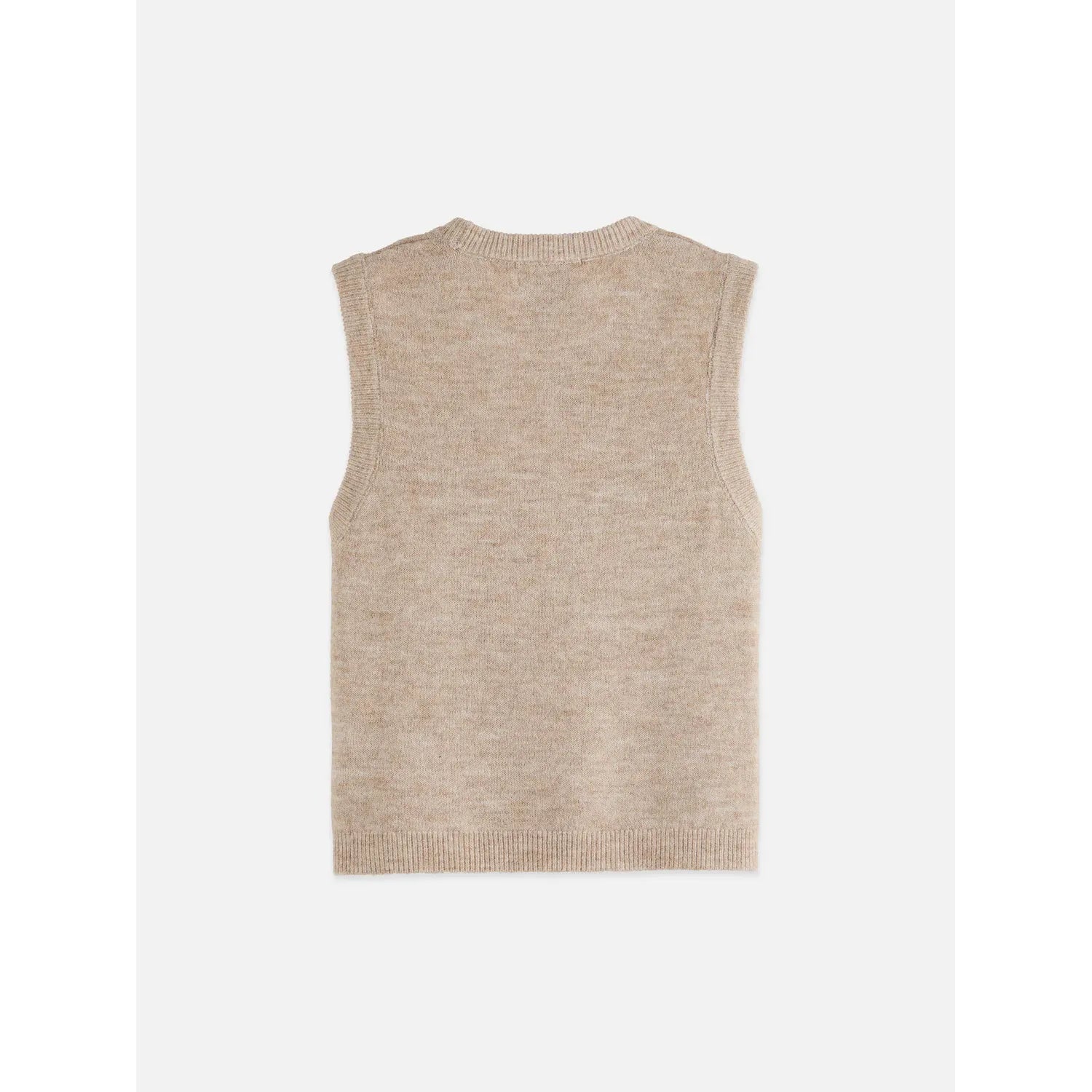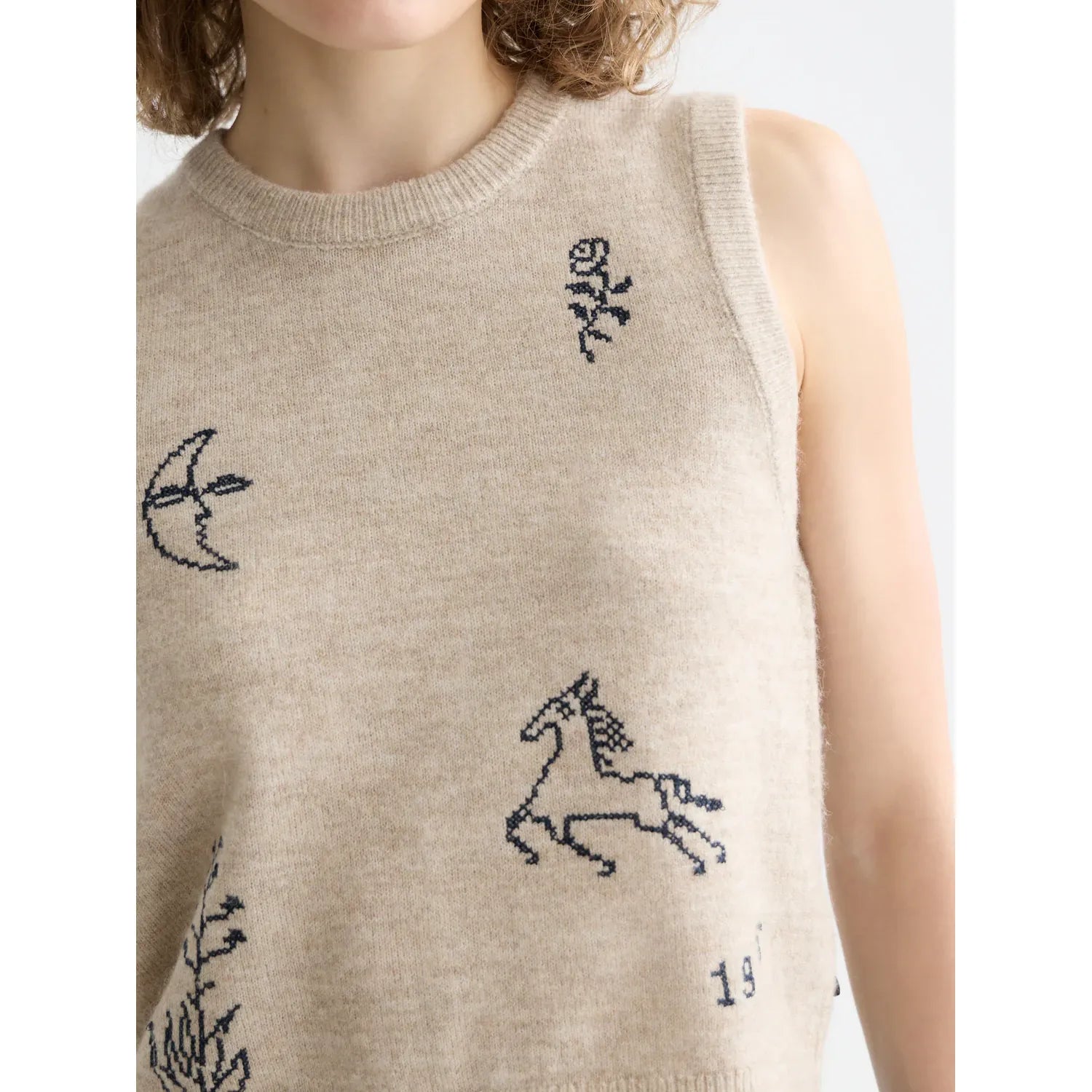 Embroidered Crew Neck Knitted Tank Oatmeal