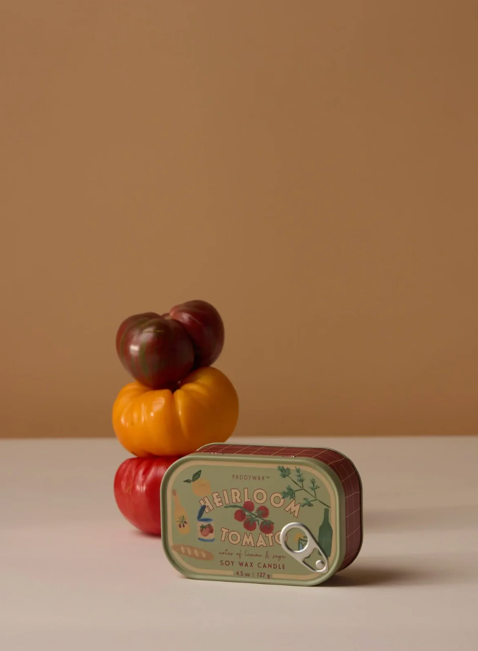 The Paddywax Bistro Heirloom Tomato Candle brings a playful culinary charm into the home, inspired by the atmosphere of a relaxed European café. Part of the Paddywax Bistro collection, this 4.5 oz candle comes in a characterful sardine-style tin with hand-illustrated artwork and a faux pull-tab lid. Designed with two wicks for an even, cosy glow, it’s a beautifully scented piece that adds personality to any space.