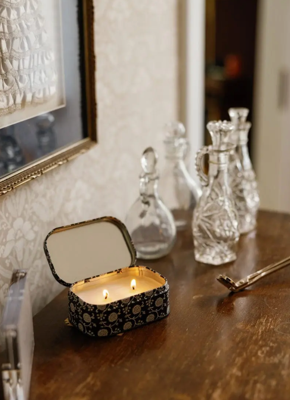 Place this candle on a coffee table, bedside table or shelf where its decorative tin can add character to the space. Once finished, the reusable tin is perfect for storing jewellery, small accessories or keepsakes.