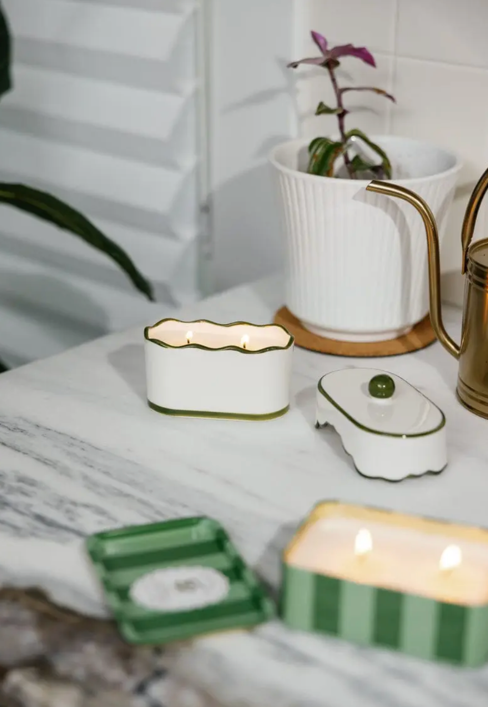 This fragrance feels cosy and comforting with a subtly gourmand twist. Creamy vanilla and toasted pistachio create a soft, inviting opening, while warm spices and smoked amber add depth and richness. The result is a sophisticated scent that feels warm and relaxing, perfect for evenings at home. The scalloped porcelain vessel adds a charming decorative detail that looks beautiful long after the candle has burned.
