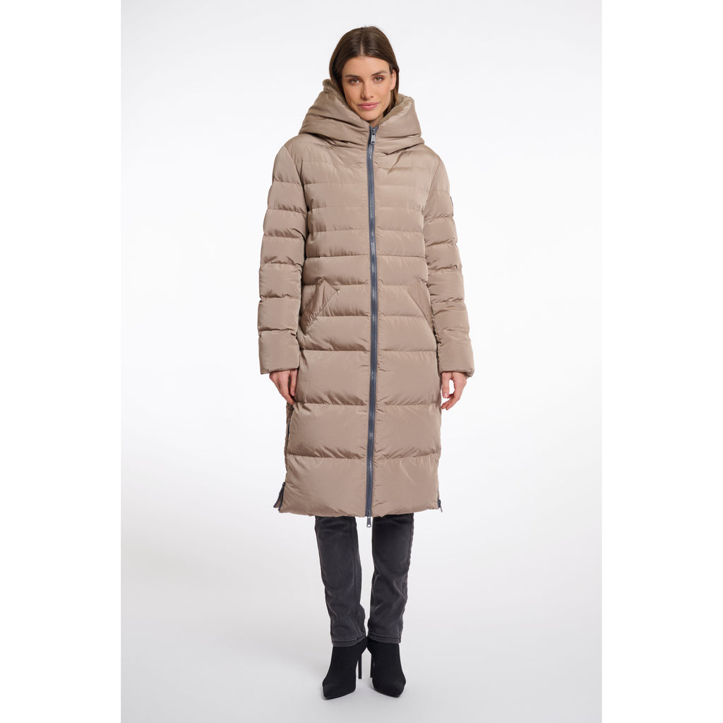 Keila Long Padded Coat With Faux Fur Toffee