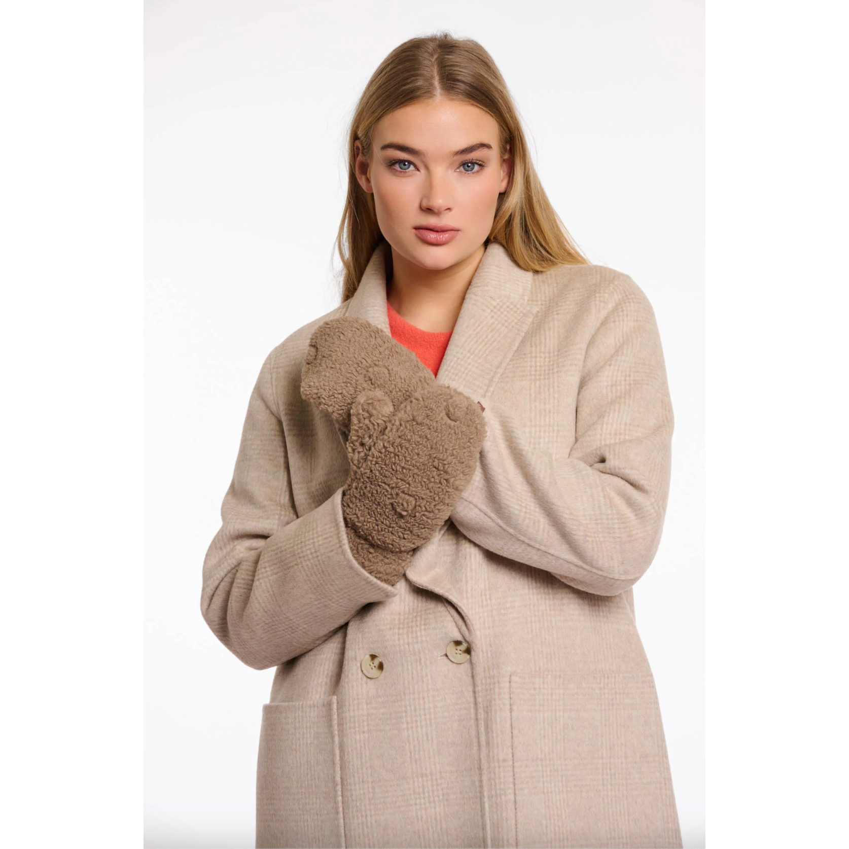 The Rino & Pelle Aleida Gloves bring together cosy comfort and clever design. Crafted from the softest teddy fabric, these irresistibly plush mittens feature a discreet inner opening that allows you to free your fingers whenever you need — perfect for texting or handling small essentials on the go. Lined with warm fleece, they offer the ideal balance of practicality and style for cold-weather days.