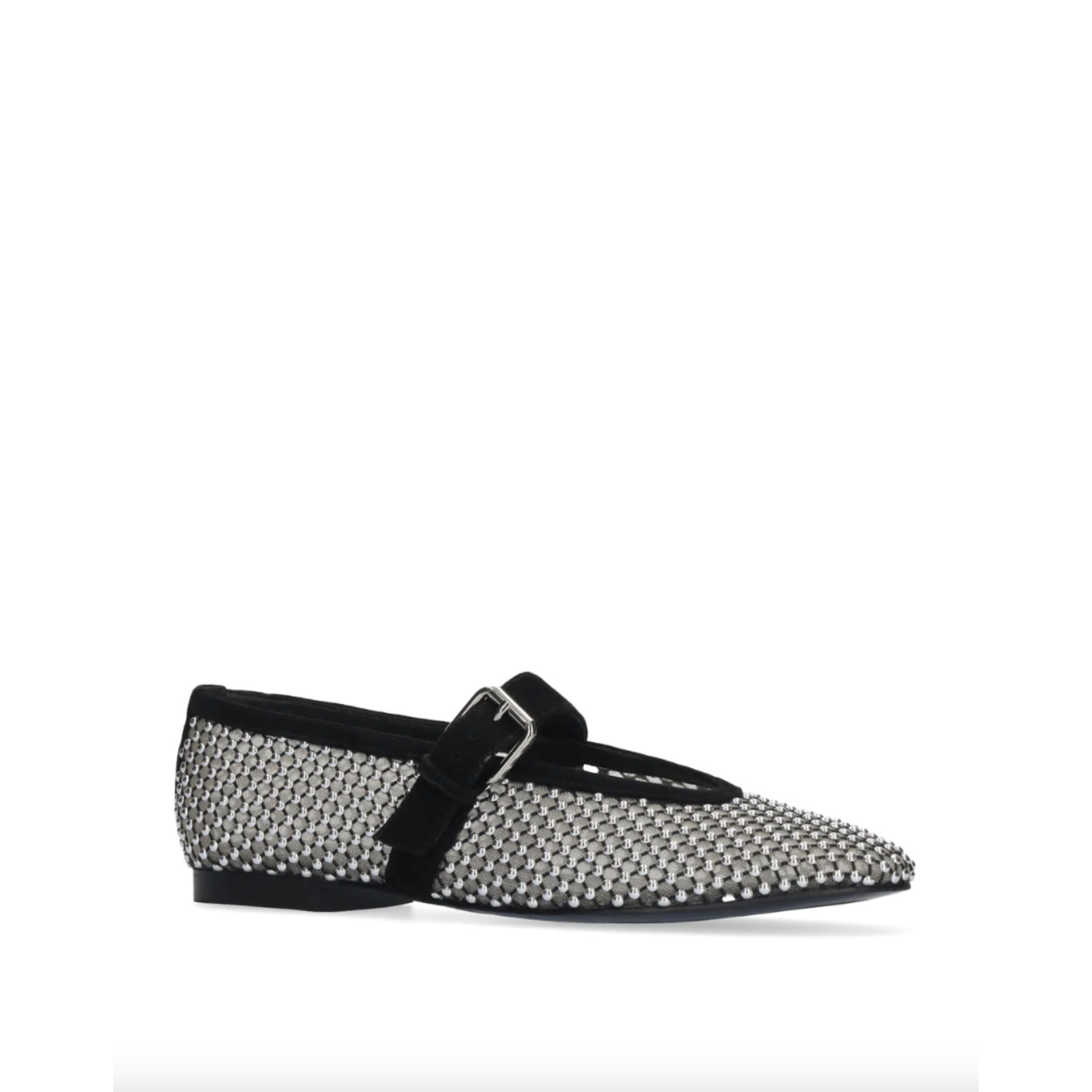 These ballet pumps are a true statement piece. The silver-tone studs add a daring contrast to the black finish, while the classic silhouette keeps them wearable and elegant. With the comfort of leather lining and a secure strap, they’re ideal for both everyday wear and after-dark styling.