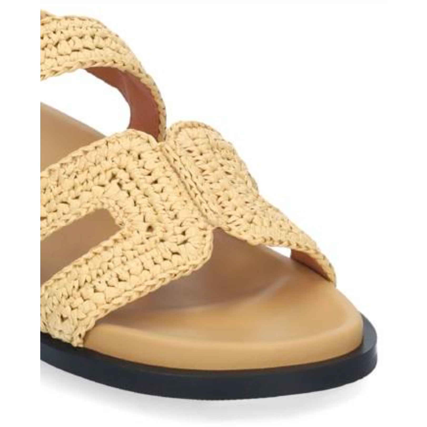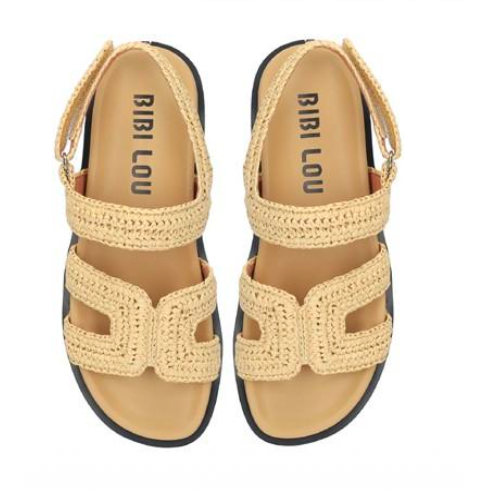 The Bibi Lou Mindy Crochet Flat Sandal in natural raffia is the ultimate warm-weather essential. Featuring beautifully woven raffia-style straps in a soft sun-kissed tone, this sandal combines texture, comfort and effortless summer style.