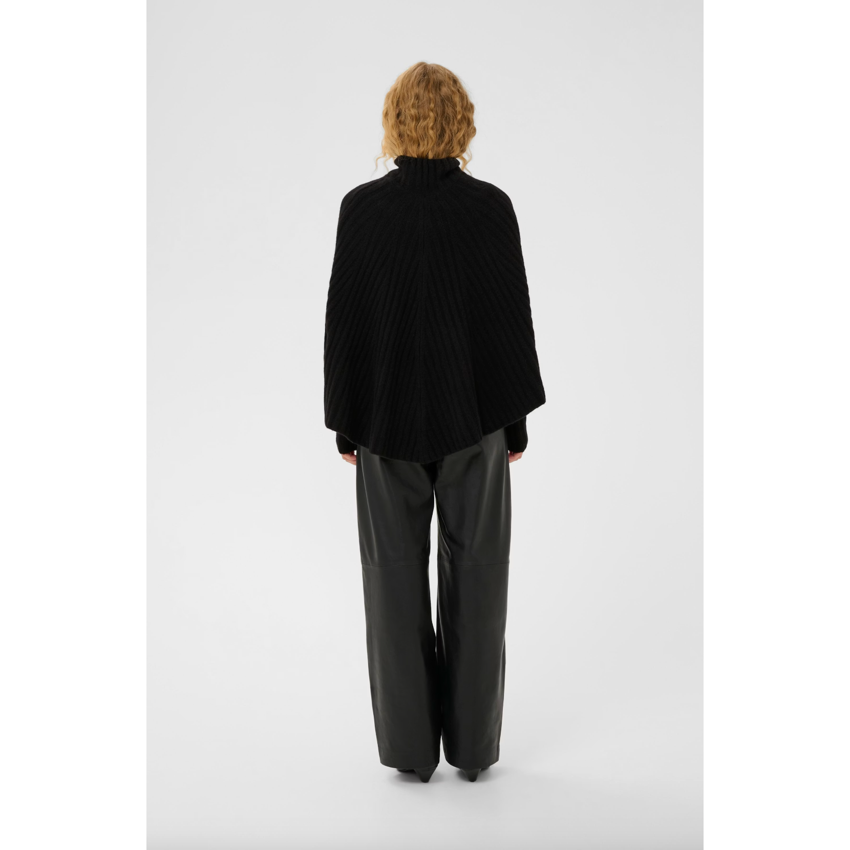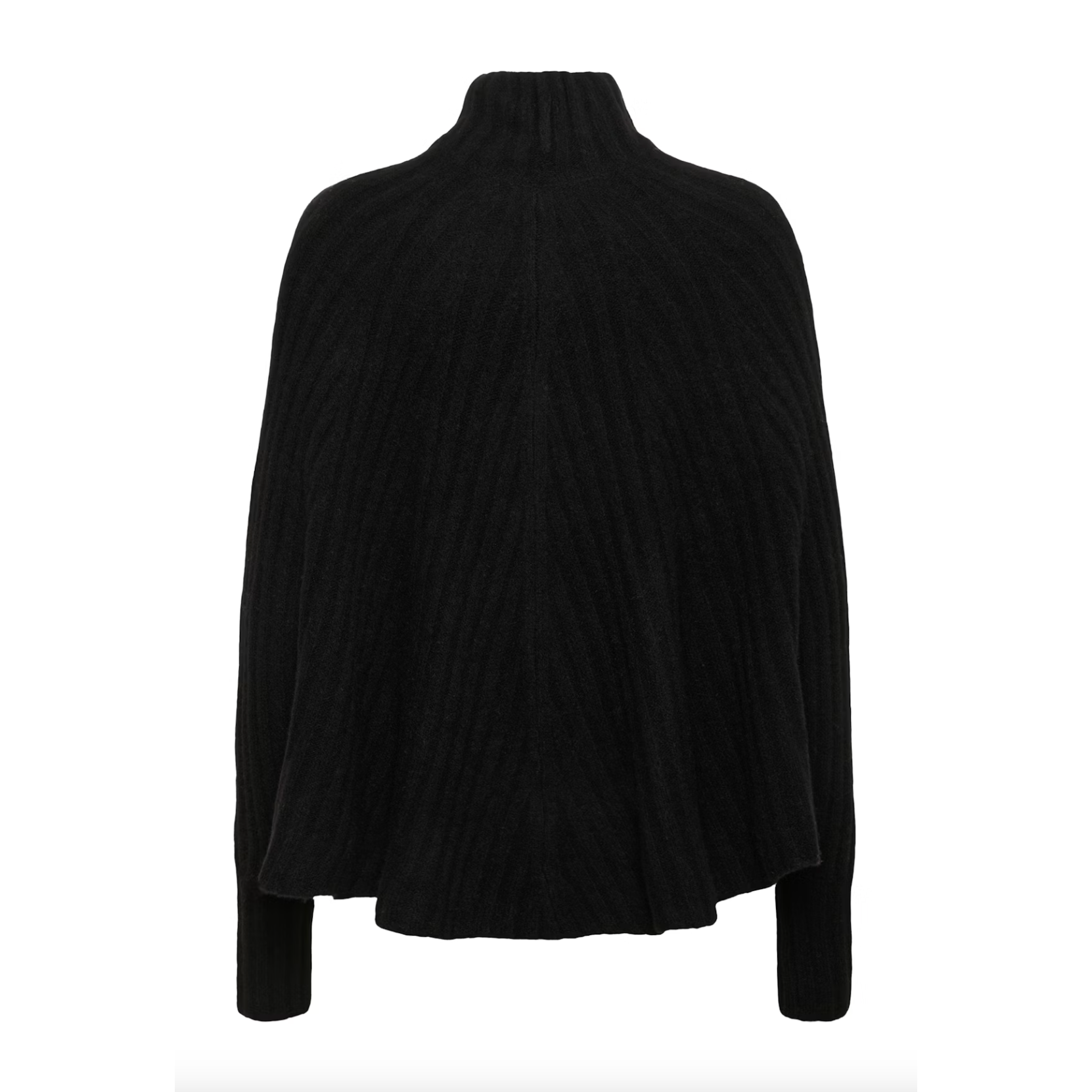 A cosy statement knit with a modern edge, the NABAAIW Poncho in Black is a ribbed knit sweater designed with a relaxed, boxy silhouette and a high mock neck for added warmth. The textured finish brings tactile interest to the look, while the long sleeves and curved fit create an easy shape that feels contemporary and effortlessly wearable.